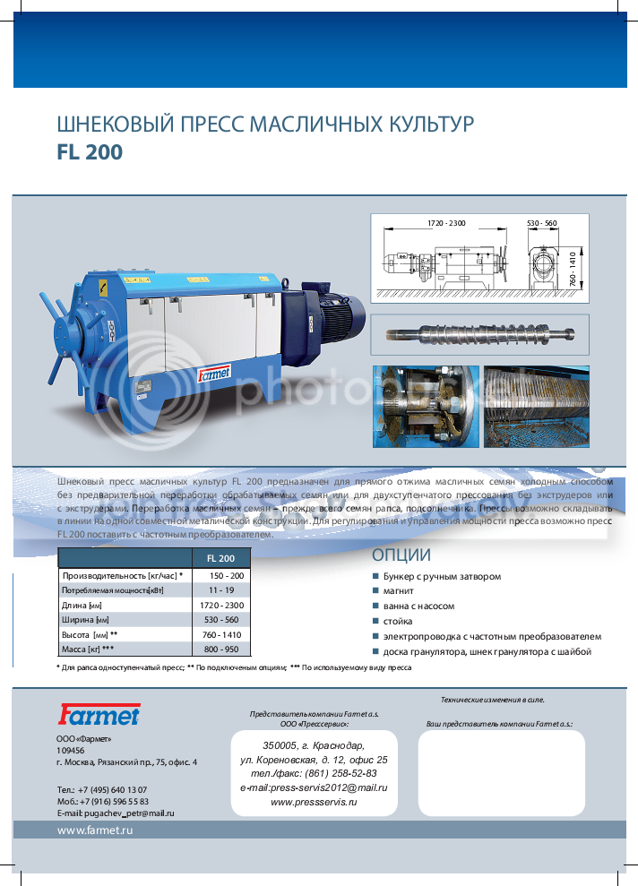 Главная » Маслопрессы холодного и горячего отжима » Compact / Шнековый пресс FL 200